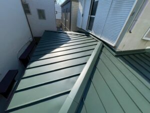 こちら比較的勾配の少ない屋根でしたので、今回も立平葺きの屋根材を選ばせていただきました。